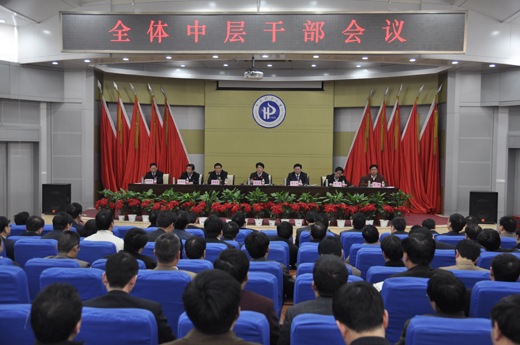 4月16日下午,学校在南校区力行楼学术报告厅召开全体中层干部会议,传达学习省委、省政府主要领导在全省主要领导干部深入贯彻落实科学发展观、加快经济发展方式转变专题研讨班上的讲话精神,安排部署我校转变发展方式及其试点工作任务。校党政领导王少安、邹友峰、张国臣、周英、王裕清、张锟、景国勋出席会议,全体中层干部参加会议。会议由校党委副书记兼纪委书记张国臣主持。