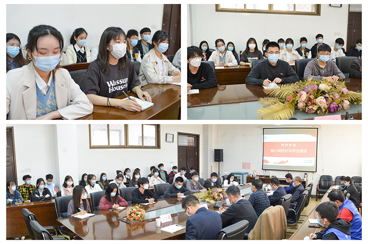 ??座谈会伊始,杨小林鼓励与会学生敞开心扉,踊跃提问,就关心的各方面问题积极发言。与会学生围绕大一新生如何快速适应大学生活做好四年发展规划、毕业班同学考研及就业相关问题、学生组织如何组织开展好主题活动,以及疫情对学生学习与生活的影响等方面踊跃发言,指出问题,提出建议。